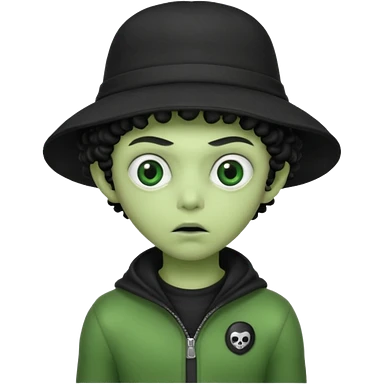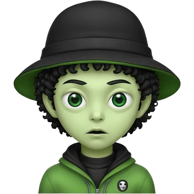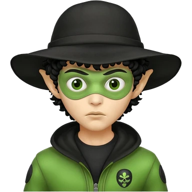 alien with robber mask concerned curly hair and robber outfit hat emoji