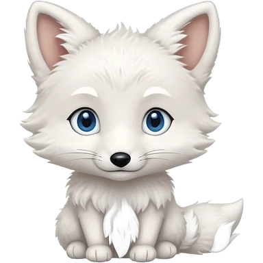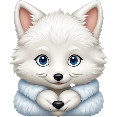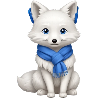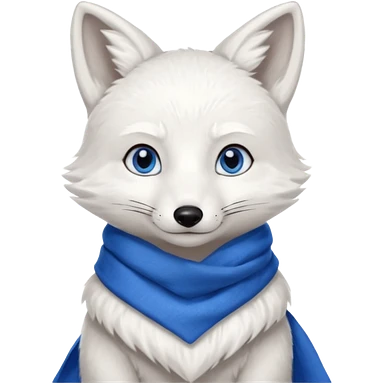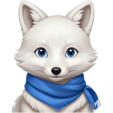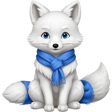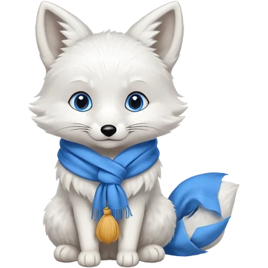 a white fox with blue eyes wearing a blue scarf in a sitting pose emoji