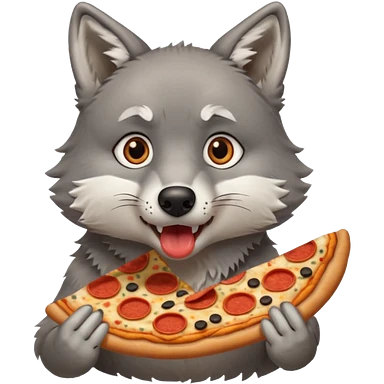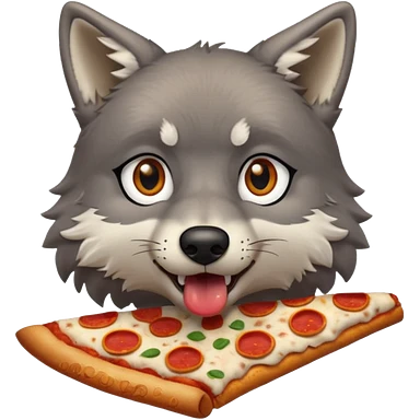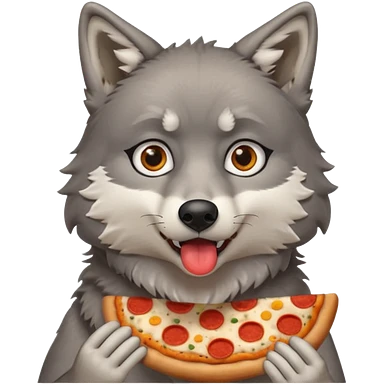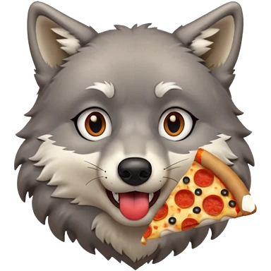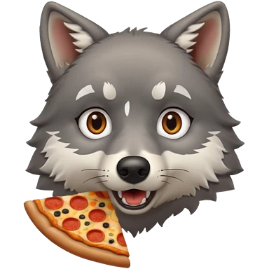 a surprised grey wolf eating a piece of pizza emoji emoji