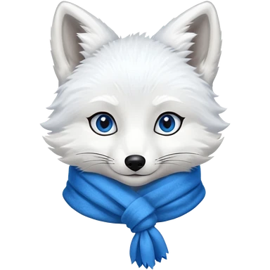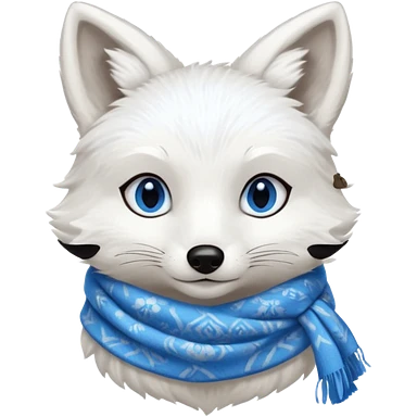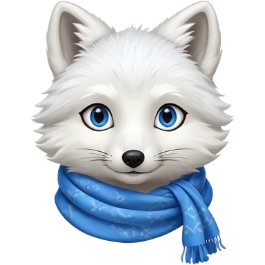 a sitting white fox with blue eyes wearing a blue scarf emoji