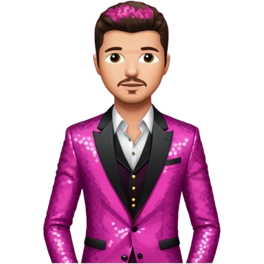Robin Gibb from Bee Gees with long brown hair, white sequin outfit emoji