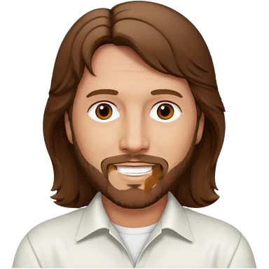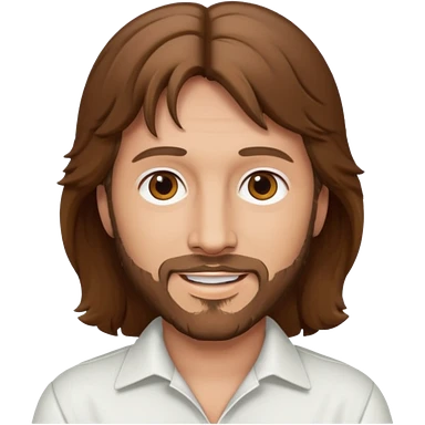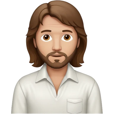 Robin Gibb brown eyes, long auburn hair, white outfit emoji | AI Emoji Generator