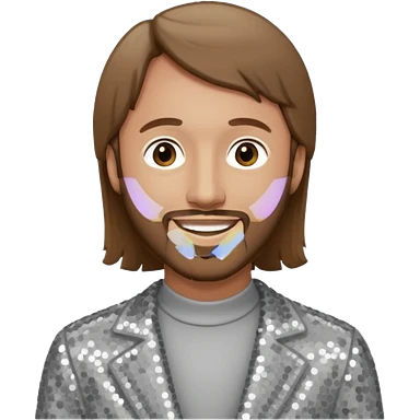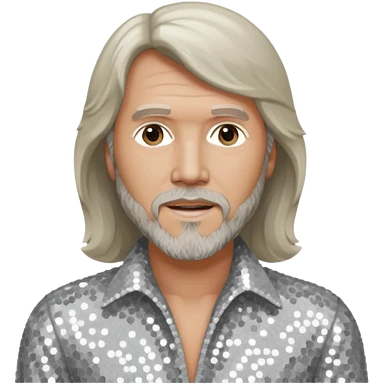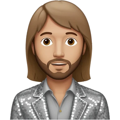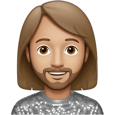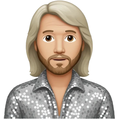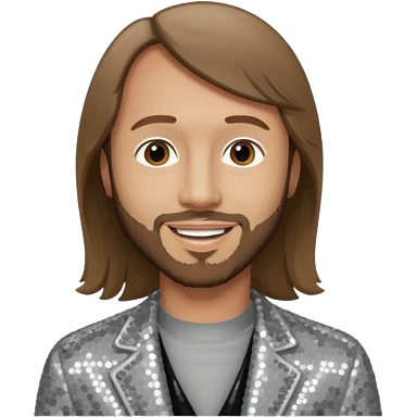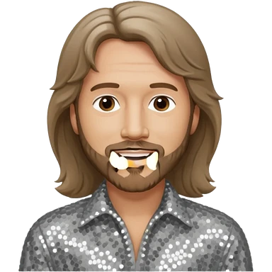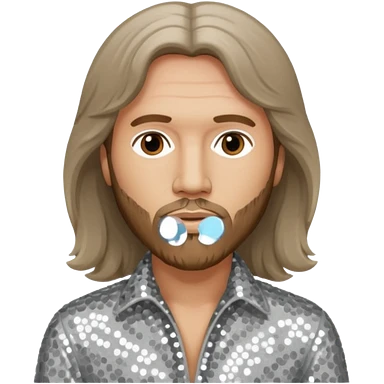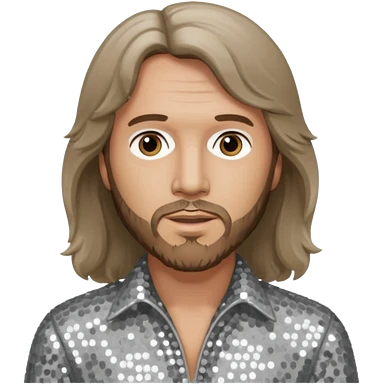 Robin Gibb from Bee Gees with light grey sequin outfit, long auburn hair emoji | AI Emoji Generator
