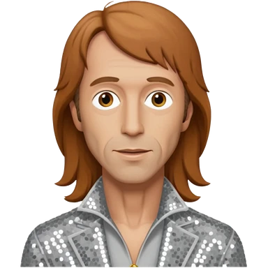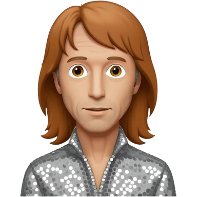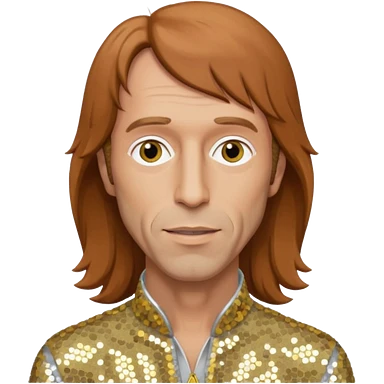 Robin Gibb from Bee Gees with light grey sequin outfit, long auburn hair emoji