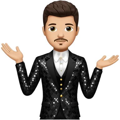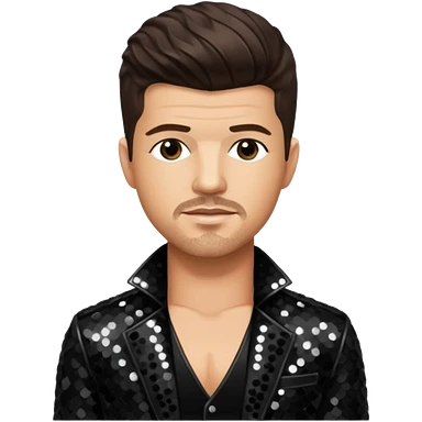 Robin Thicke with dark brown hair, black sequin outfit, light skin emoji