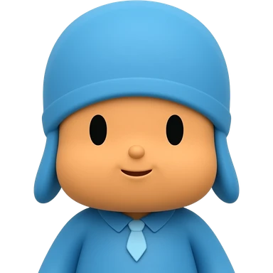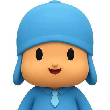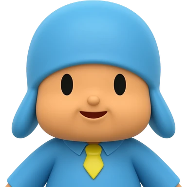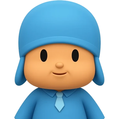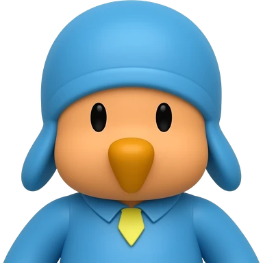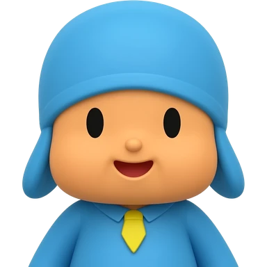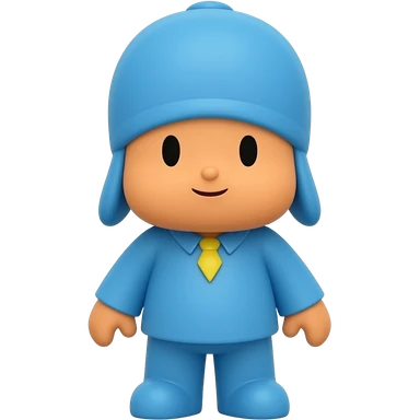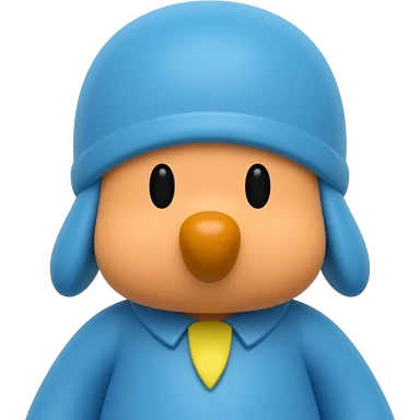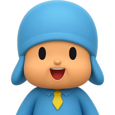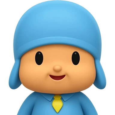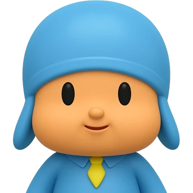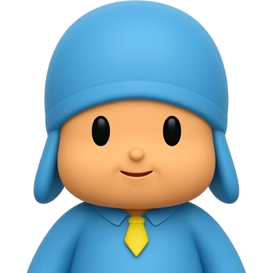 Genera un personaje de Roblox POCOYO de cuerpo completo sentado en un escritorio con una laptop emoji