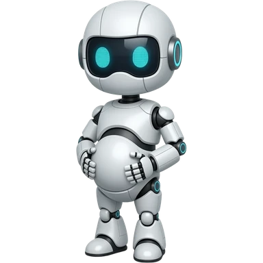 “Um robô branco e azul, com olhos digitais grandes, jeito atrapalhado e aparência muito fofa.” emoji