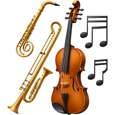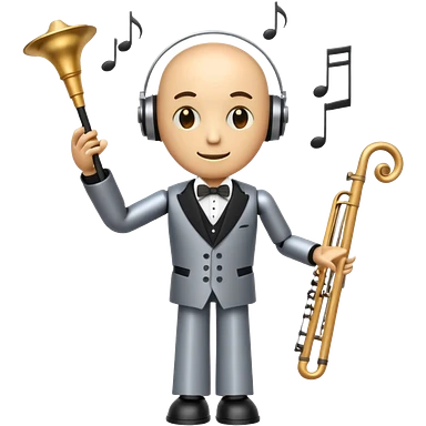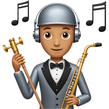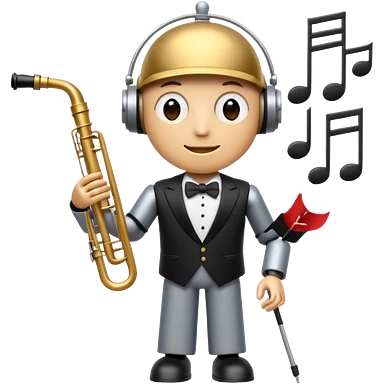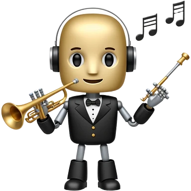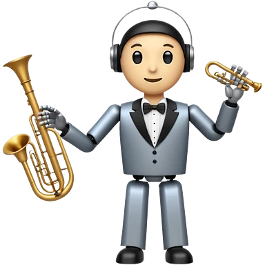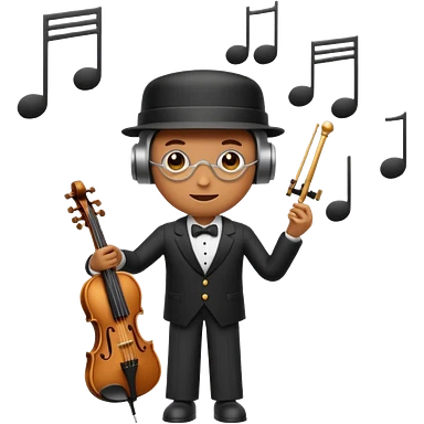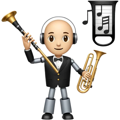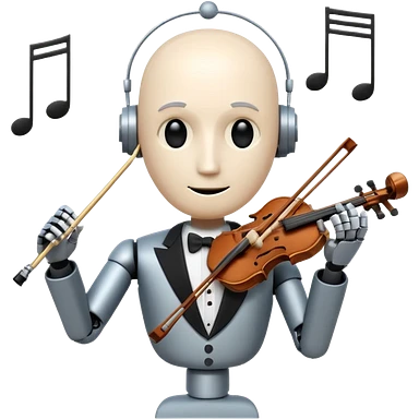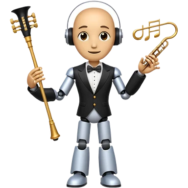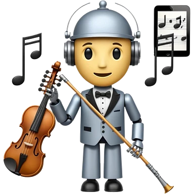 robot Create a sophisticated and elegant emoji that represents orchestration and arrangement. The design should feature a conductor’s baton, musical notes, and a symphonic score, symbolizing the process of arranging and orchestrating music. Incorporate instruments like a violin, trumpet, emoji