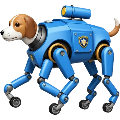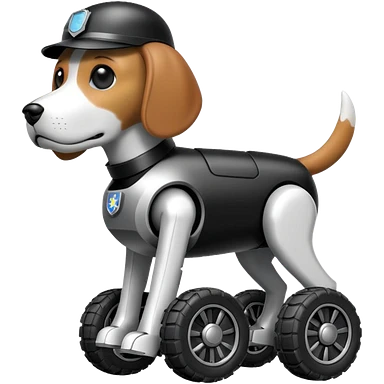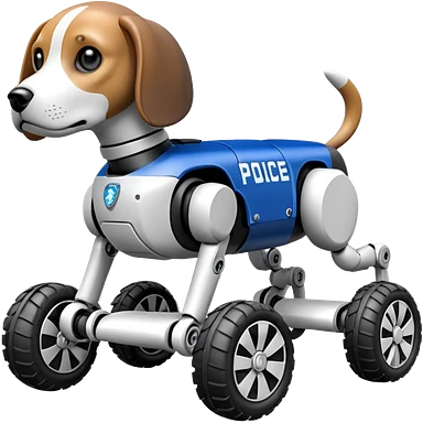 Stylish Military police robotic beagle dog with off-road wheels emoji