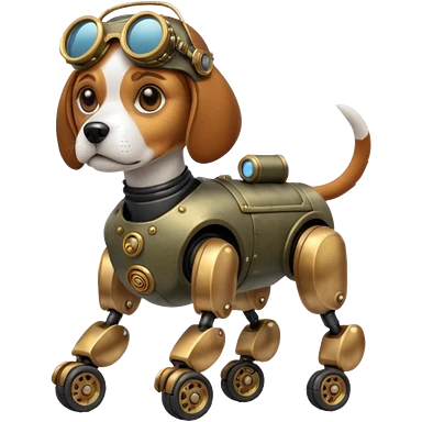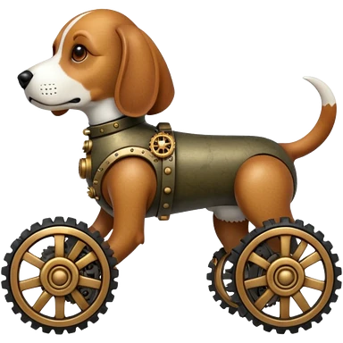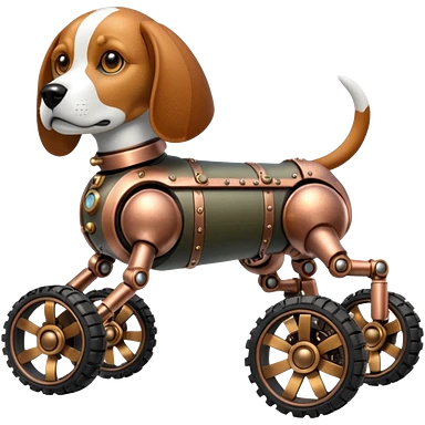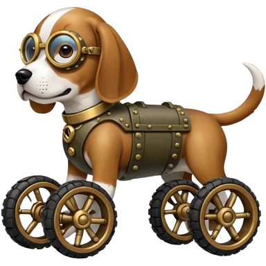 Stylish steampunk Military robotic automaton beagle dog with off-road wheels emoji