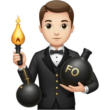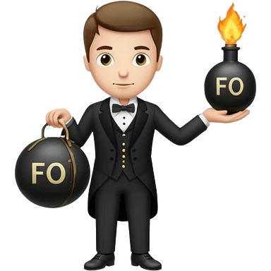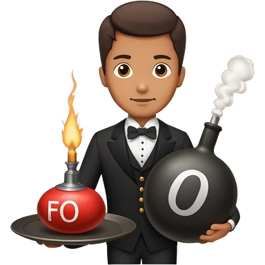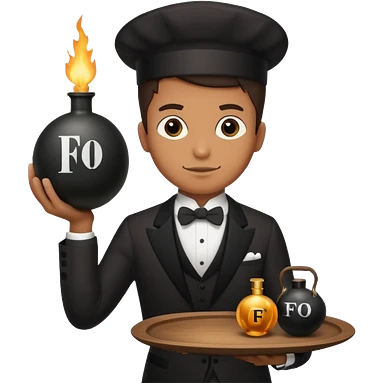 A butler holding an old-fashion bomb with the letters “FO” on the side emoji