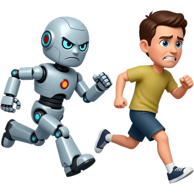 Robot chasing an human emoji | AI Emoji Generator