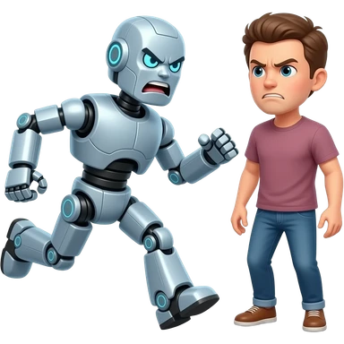 Angry robot chasing an frustrated human emoji