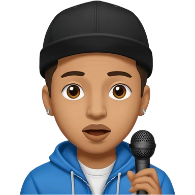 cantante de rap, con estilo urbano, de piel morocha, sujetando un micrófono, cantando. que se vea de la cintura para arriba, puede contener accesorios clave de un rapero. emoji