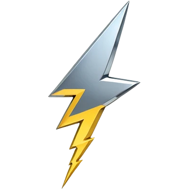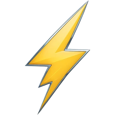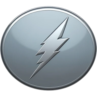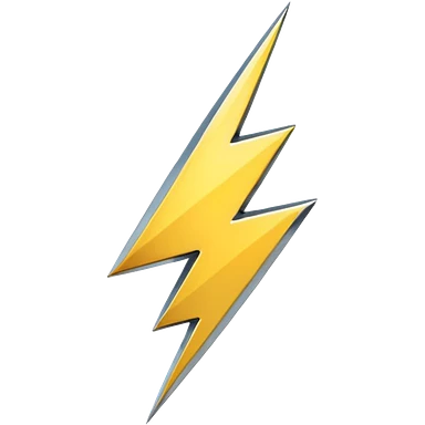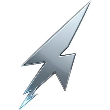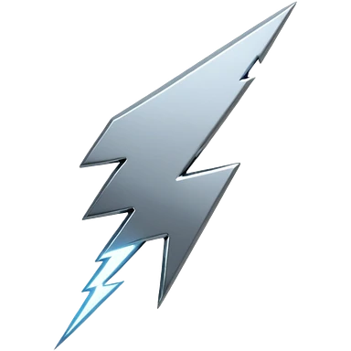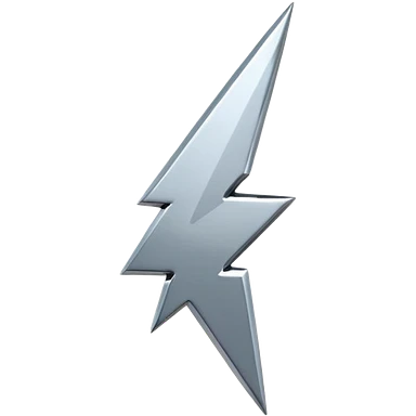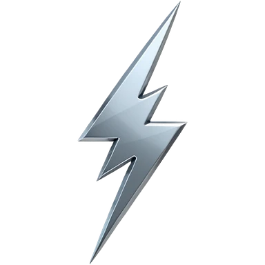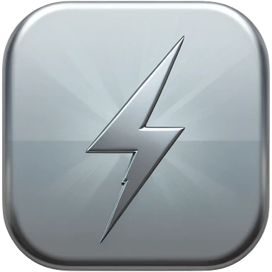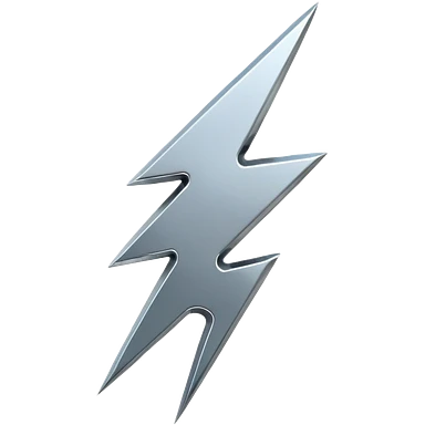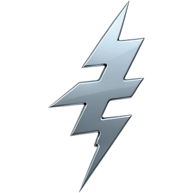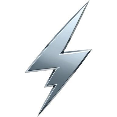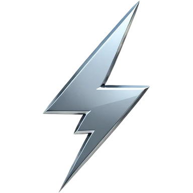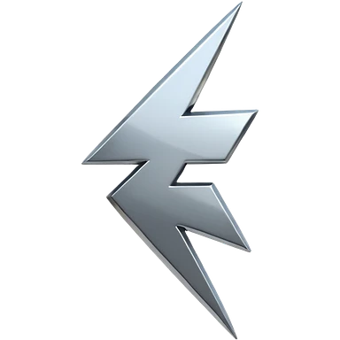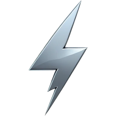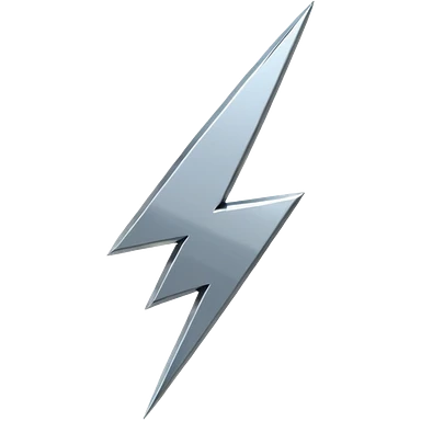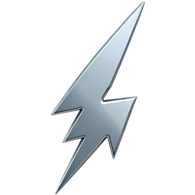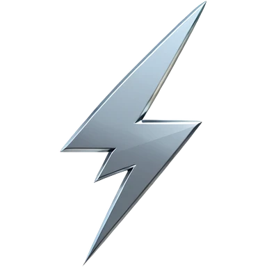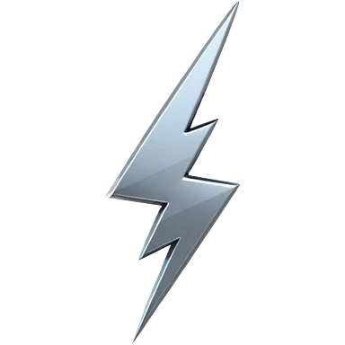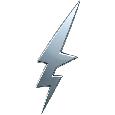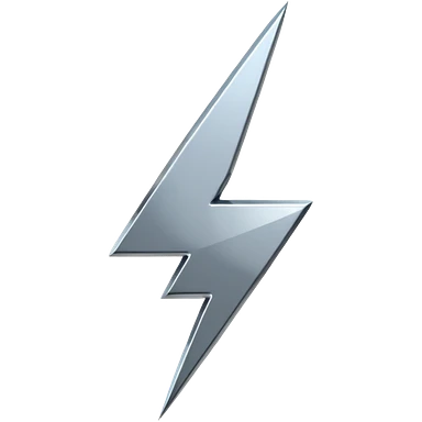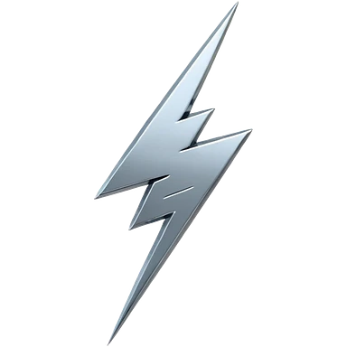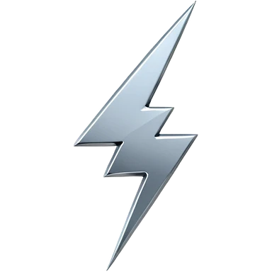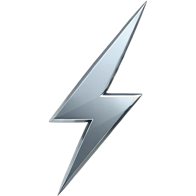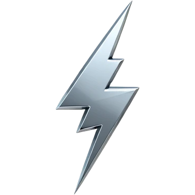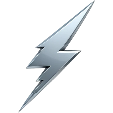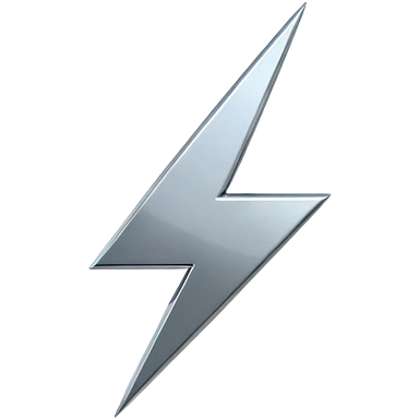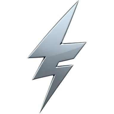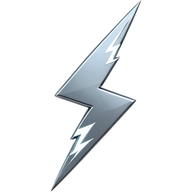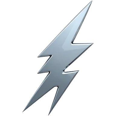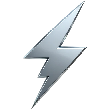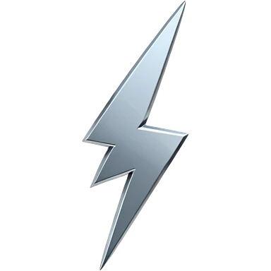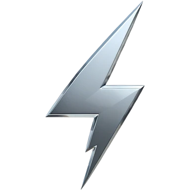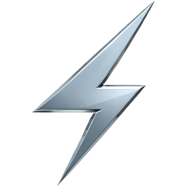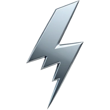 A lightning bolt emoji made of polished silver chrome, sharp yet rounded edges, glossy metallic surface, soft reflections, minimal futuristic design, iOS emoji style, centered, clean white background emoji