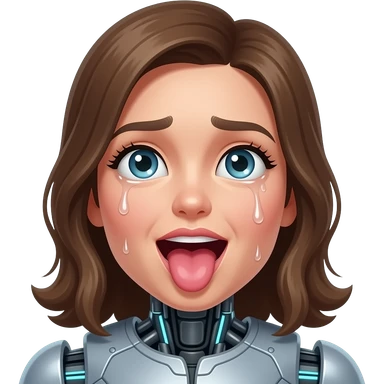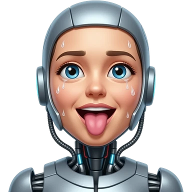 female robot heavy sweating with toung out and eyes looking up emoji