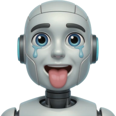 robot emoji sweating with toung out and eyes looking up emoji