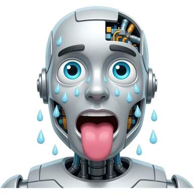 robot emoji sweating with toung out and eyes rolled up emoji | AI Emoji Generator
