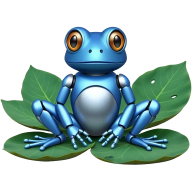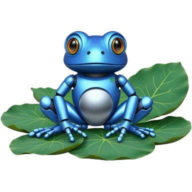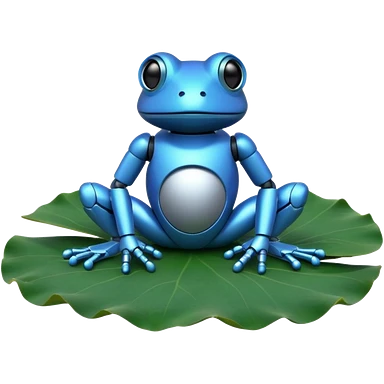 blue robot frog on lotus leaf emoji