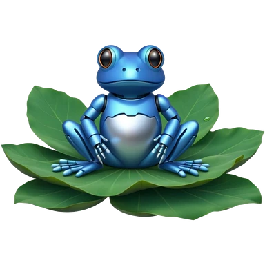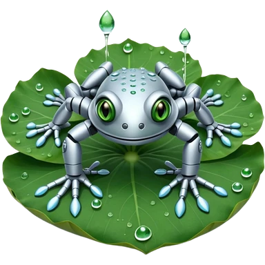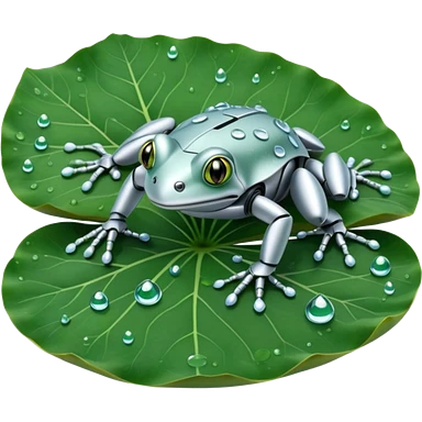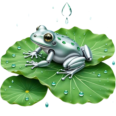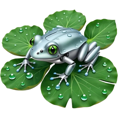 silver robot frog on lotus leaf emoji
