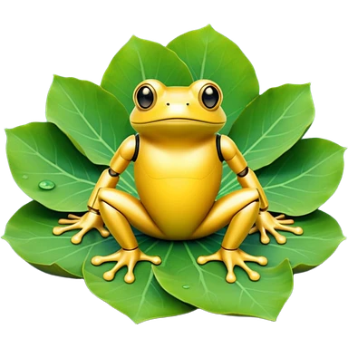 yellow robot frog on lotus leaf emoji