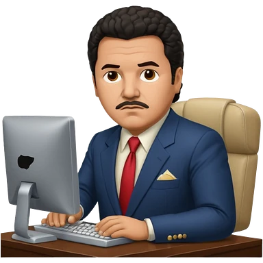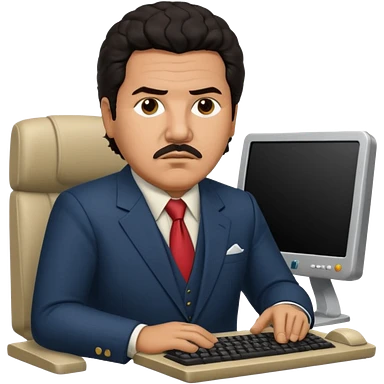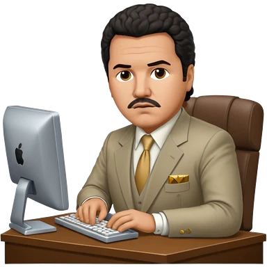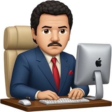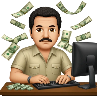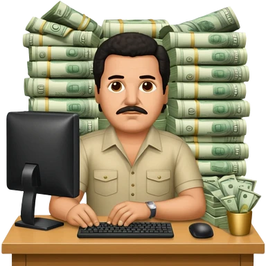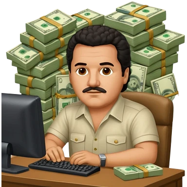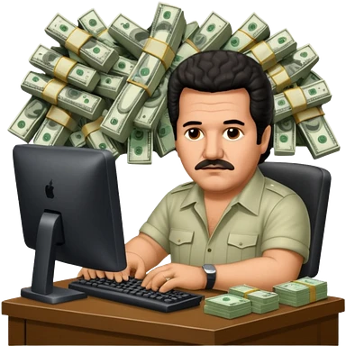 drug lord Pablo escobar using computer with money wallpaper as background emoji