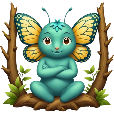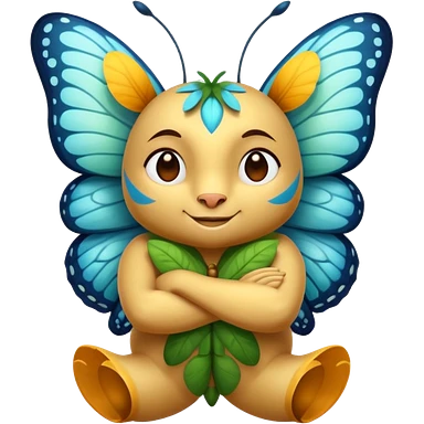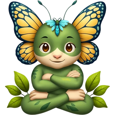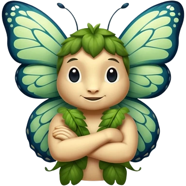 forest spirit character arms crossed confident smirk butterflies around emoji