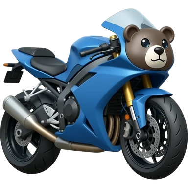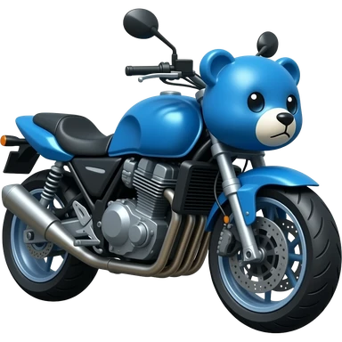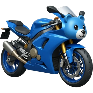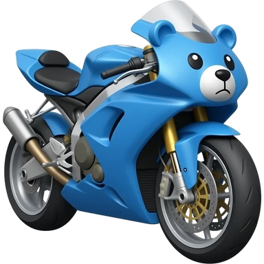 A blue race motorcycle with a blue robot bear head at the front emoji
