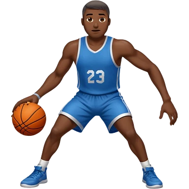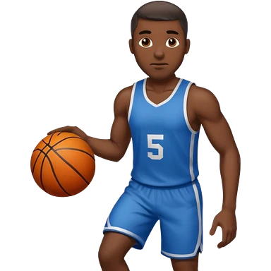 black man basketball player blue jersey with mustache holding basket ball emoji