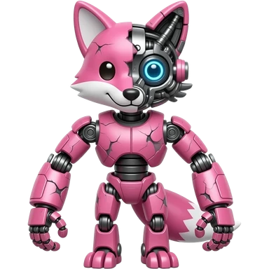 Robot pink fox super broken with robot hands with a sec robot head emoji