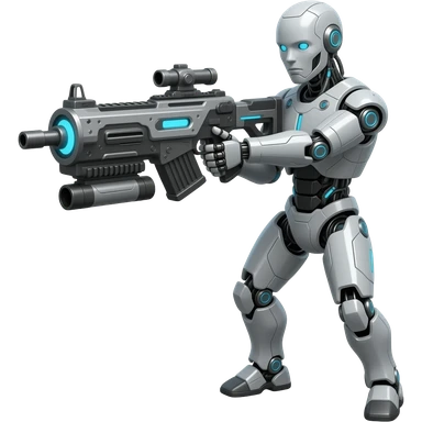 Un robot futurista de cuerpo completo disparando con una arma grande muy tecnológico emoji