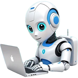 Emoji: a cute humanoid robot typing on a laptop, with lines of code appearing on the screen. The robot has a friendly expression, 3D style, minimalistic background, cool AI-inspired colors emoji
