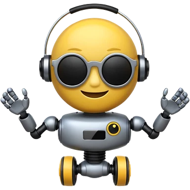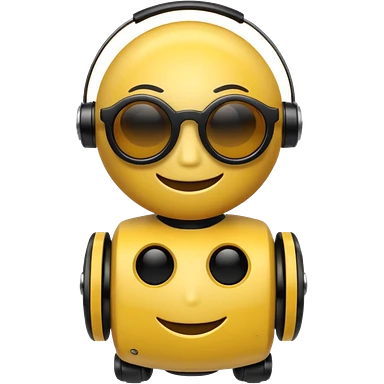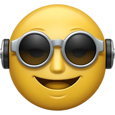 round grinning scary cyborg robot with dark black sunglasses emoji