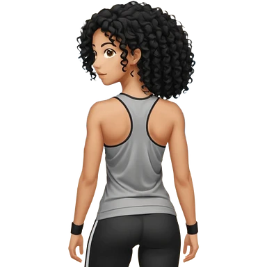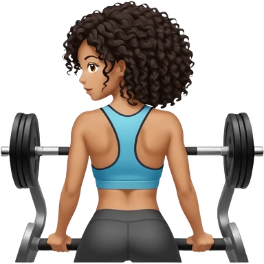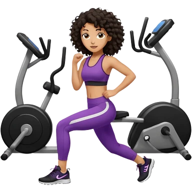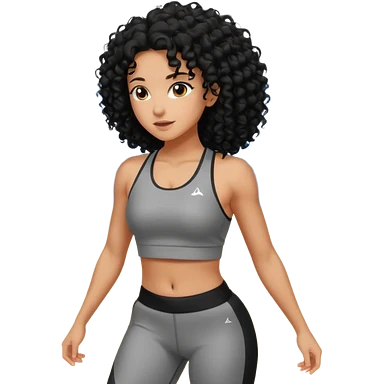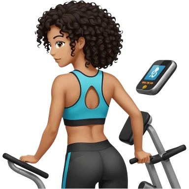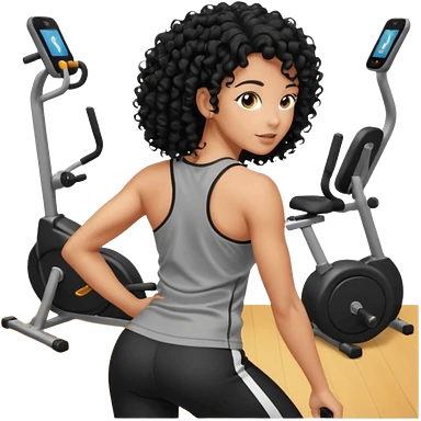 Treino de academia mulher morena de cabelos cacheados caindo nas costas emoji
