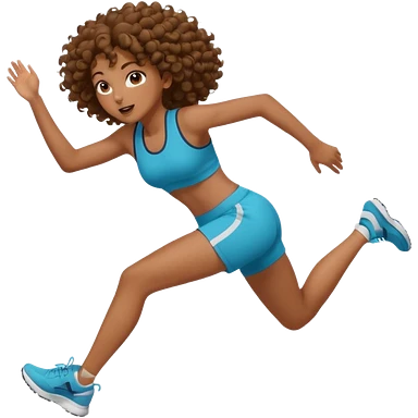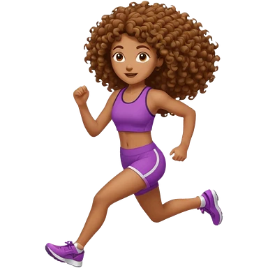 Treino de corrida mulher morena de cabelos cacheados emoji