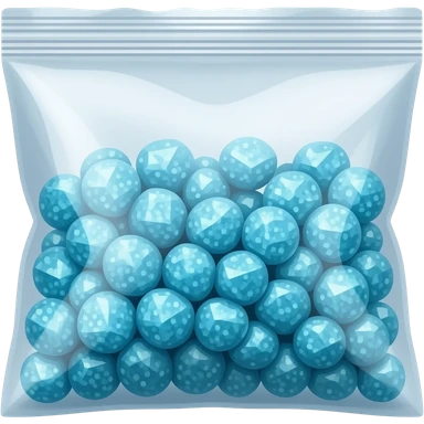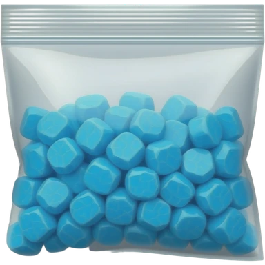 a plastic ziplock bag with blue sparkly rock candy crystals emoji