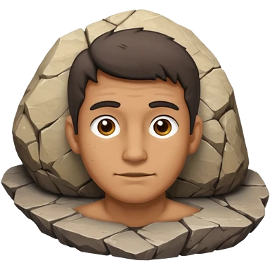 A large, rough rock or boulder with uneven surfaces and natural cracks. The texture is rugged and earthy, in shades of gray or brown, symbolizing strength, stability, and nature emoji