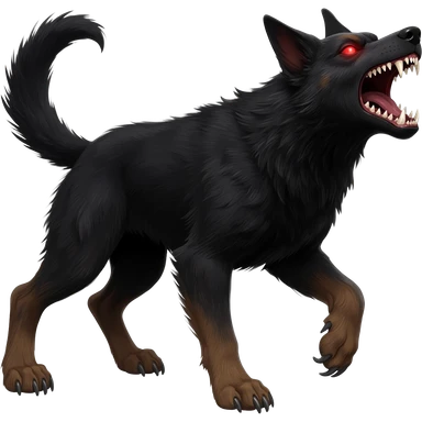 Demonic devilish angry vicious monsterous mongrel-dog, with devil horns, barking loudly emoji
