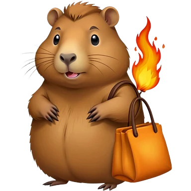 Iconic capybara with burning bag, and a sassy but caring attitude. emoji