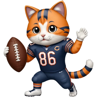 Rocky the cat in a Chicago Bears football uniform scoring a touchdown emoji