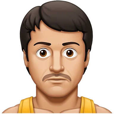 Rocky Balboa inspired by Sylvester Stallone, wearing boxing gloves, round face, expressive eyes, simplified features emoji