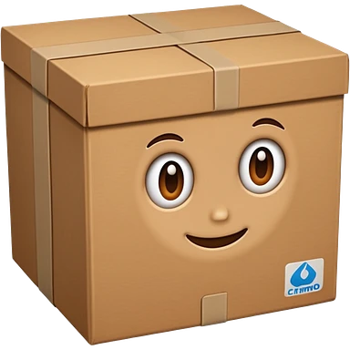 una caja de carton dibujada como carita con lentes encima de un corazon emoji