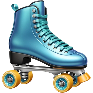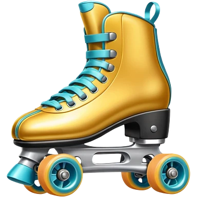 Realistic turquoise and white roller skate with orange wheels emoji
