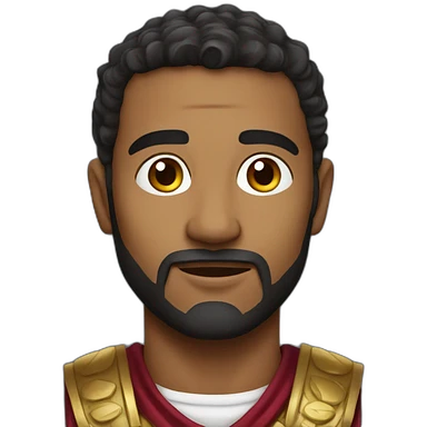 n apple emoji, of a very smiling man, who looks like a Roman warrior with a gold helmet with a red crest, background in png, no light or shadow emoji
