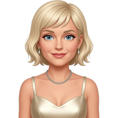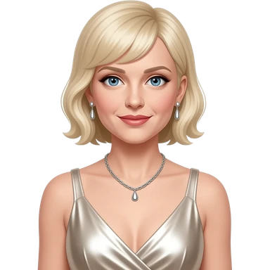 Michelle Williams, Actress with ivory metallic dress, silver necklace and earrings emoji