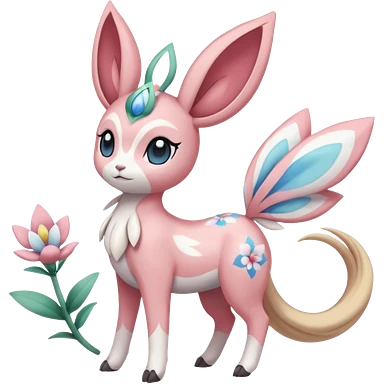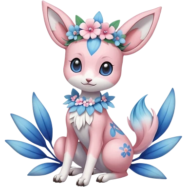 Romantic Pastel Elegant Beautiful Gorgeous Pretty Realistic Floral Meloetta-Sylveon-Palkia-Cresselia-Digimon-Pokémon-Fakémon-hybrid-fusion, full body emoji