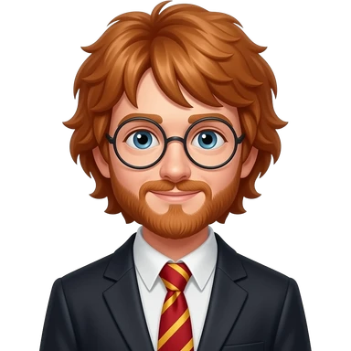 Ron Weasley with wand, smiling, red hair emoji