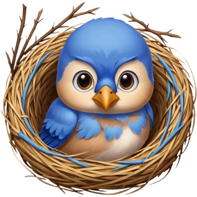 a small teacher bluebird in a nest - he needs glasses on to be teacher emoji