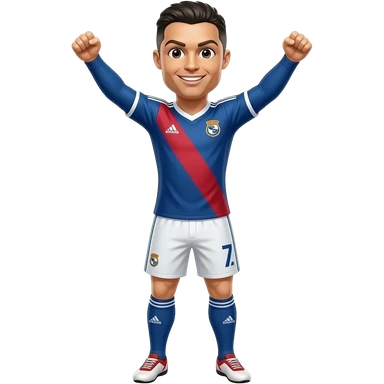 Ronaldo doing a bicycle kick with football in mid air While wearing a Retro blue Real madrid kit and yes i want it to be exactly the same as he Scored it in 2018 vs Juventus and please make it Realistic emoji