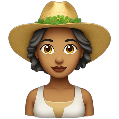 Realistic brasilian woman with longer brown currly hair with pink roses & wearing style blue dress elegantly emoji